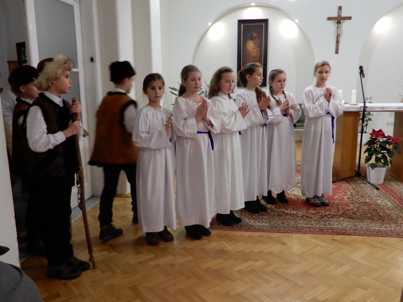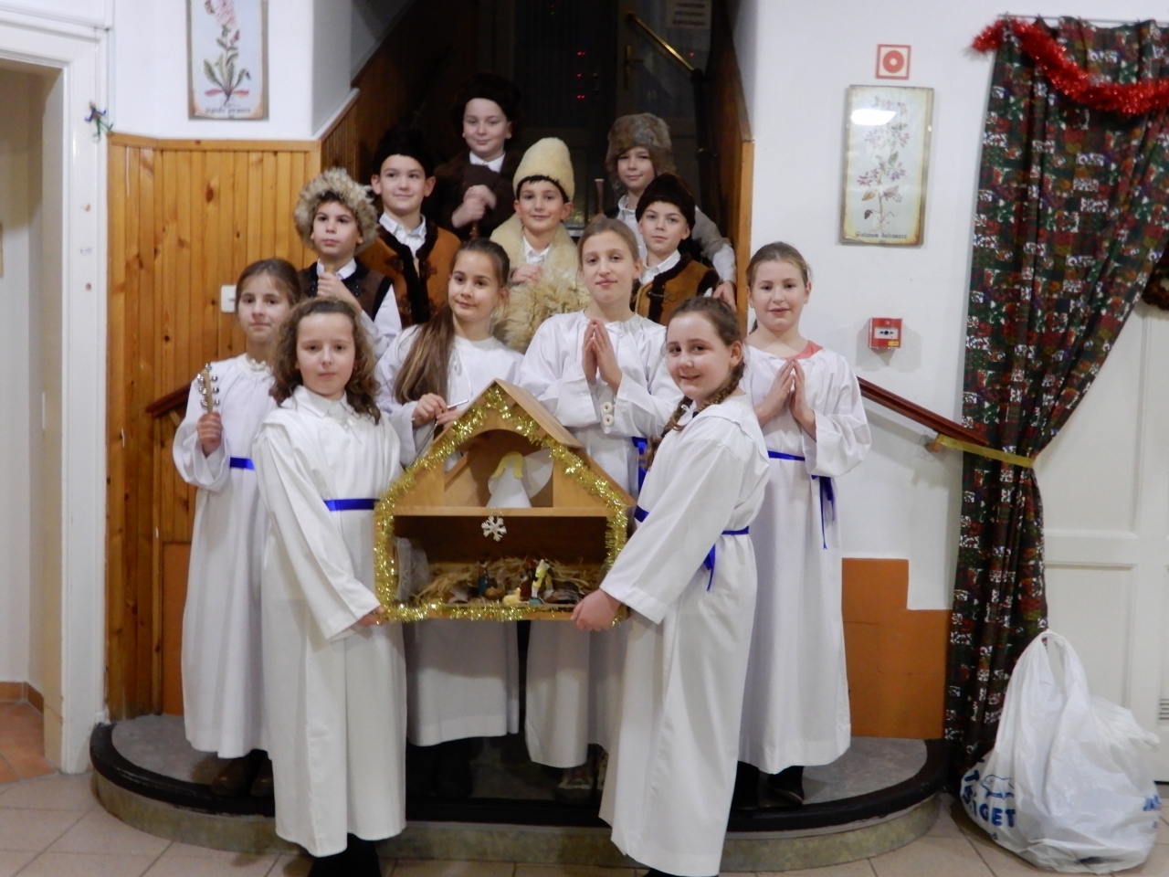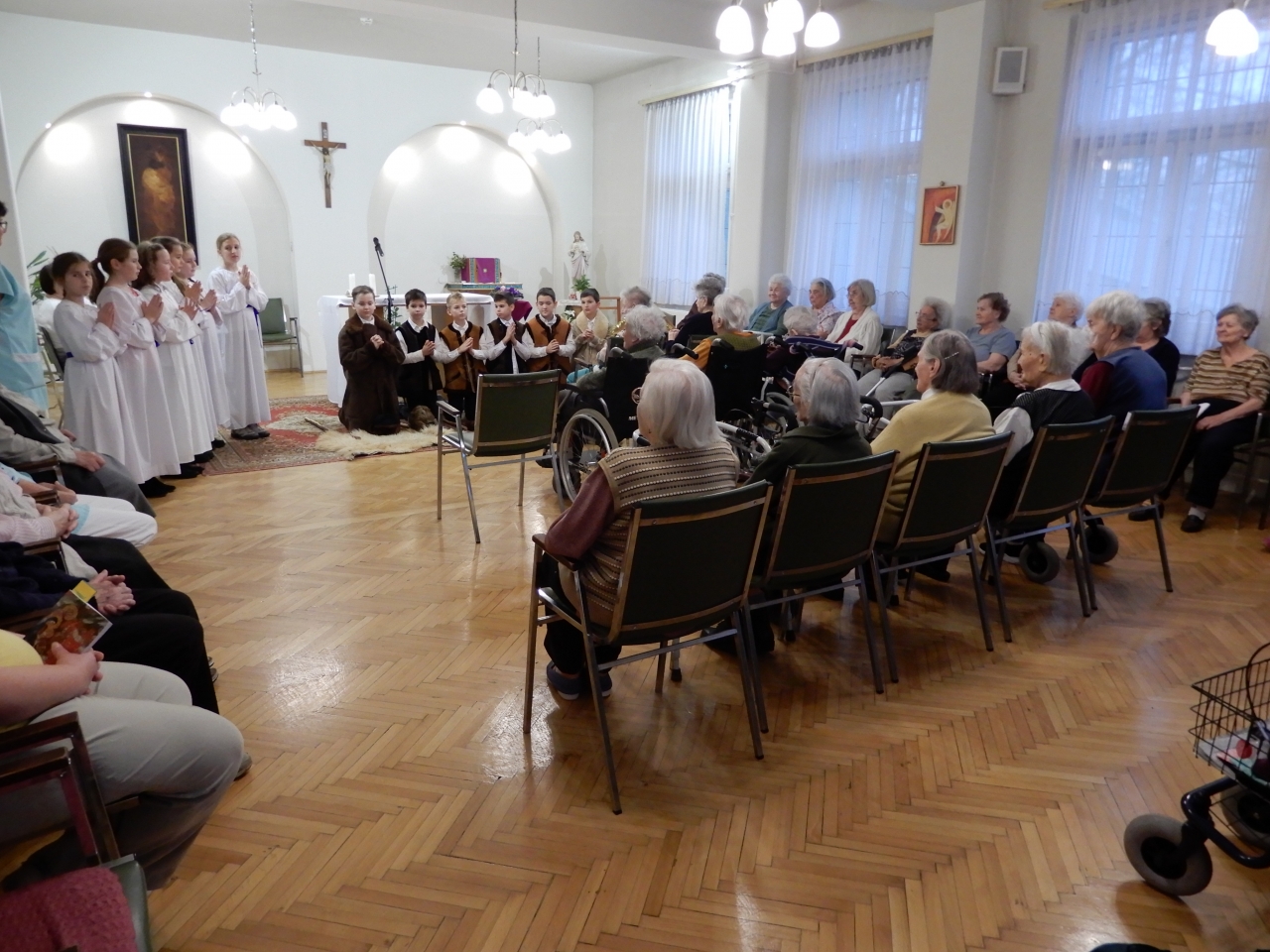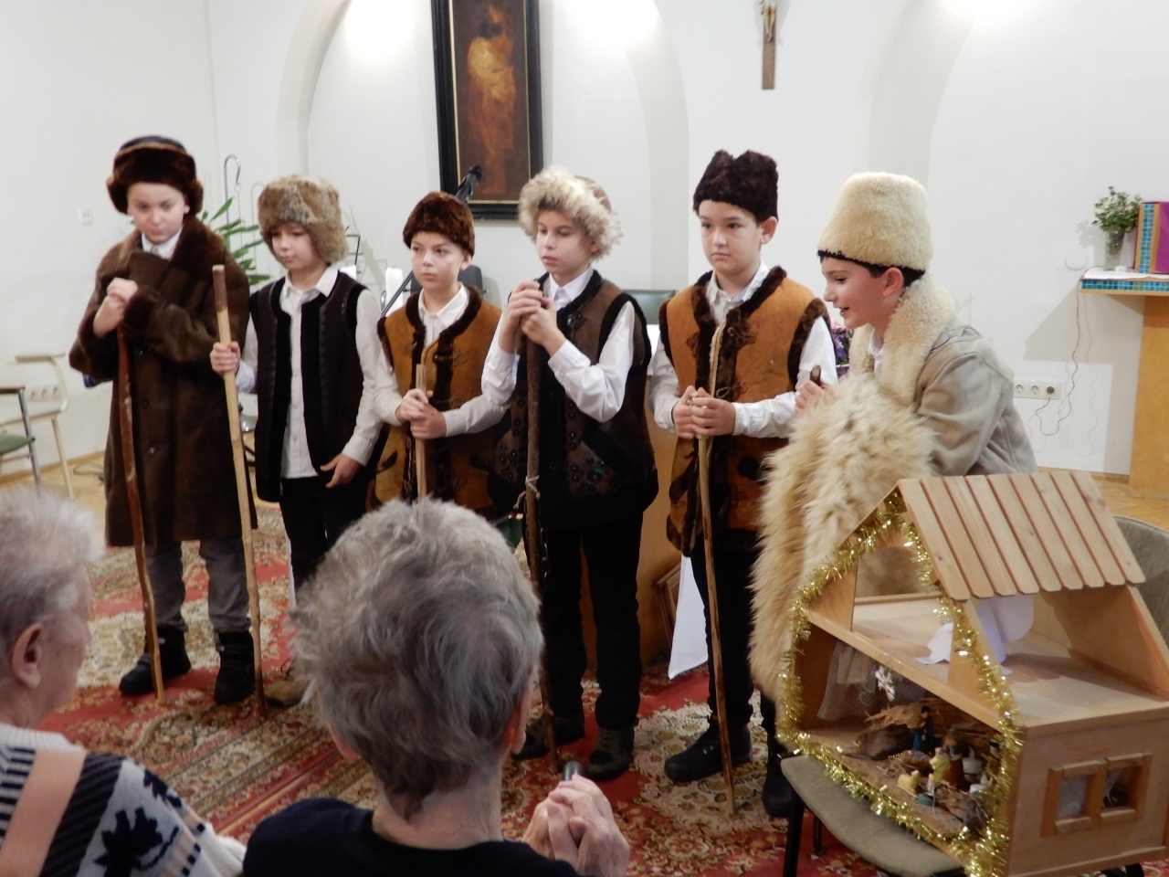 A Szent Erzsébet Katolikus Általános Iskola 4. osztályos tanulói az Otthon kápolnájában betlehemes játékot adtak elő. Az őszinte, tiszta gyermekarcok, a szépen csengő gyermekhangok, a gondos jelmezek igazi ünnepi áhítatot hoztak lakóink szívébe. Köszönet a felkészítő pedagógusoknak és a szülőknek, nagyon szépen szerepeltek a gyerekek. Furulyával kísért hagyományos karácsonyi dalok hangoztak el, a betlehem is ügyes kezeket dicsér. Az előadás végén lakóink ünneplőbe öltözött szívvel énekeltek együtt a gyerekekkel.