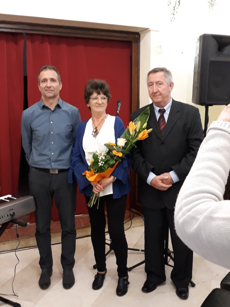 November 12-én, a Szociális Munka Napján egy kedves ünnepség keretében Fóti Emőke munkatársunk vehette át Pécel város polgármesterétől, Horváth Tibor úrtól Az Év Szociális Dolgozója Díjat. A Zeneiskola tanárai színvonalas műsorral köszöntötték a jelenlévőket. Az ünnepség után munkatársainkkal együtt ünnepeltük meg Emőke kitüntetését.