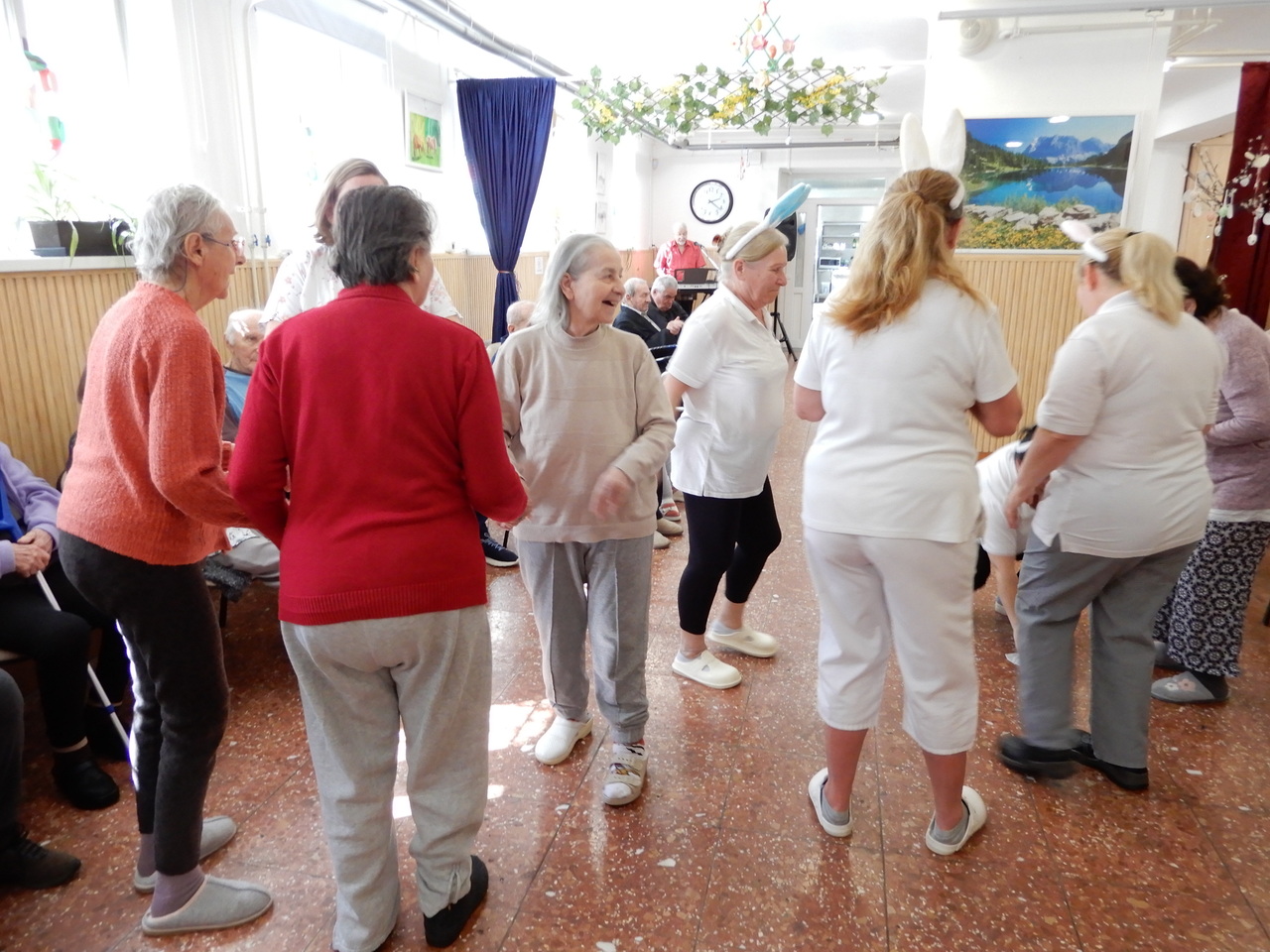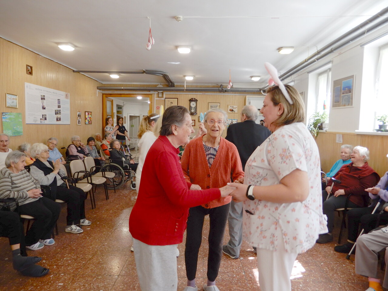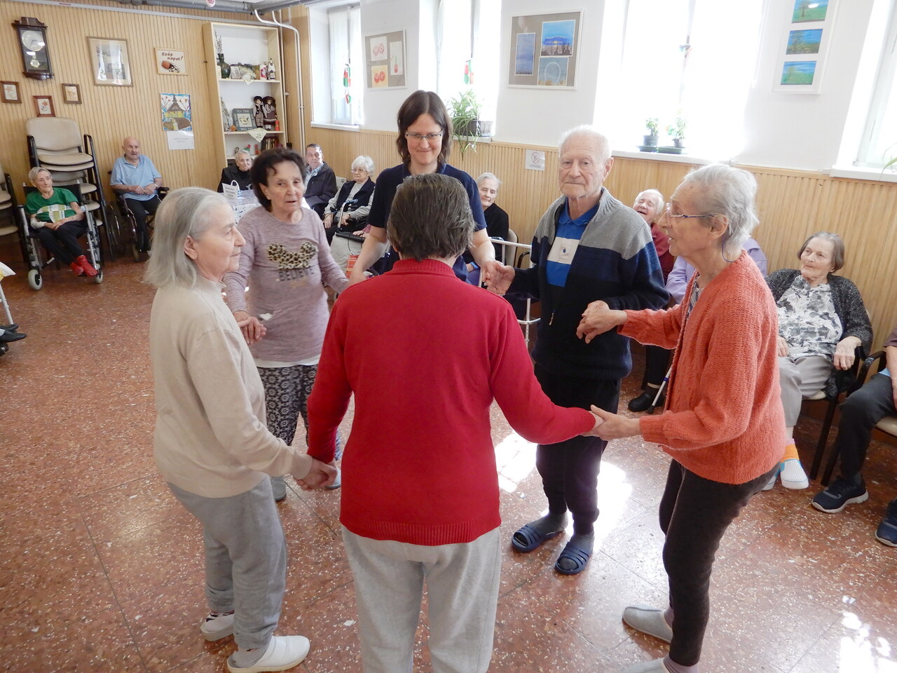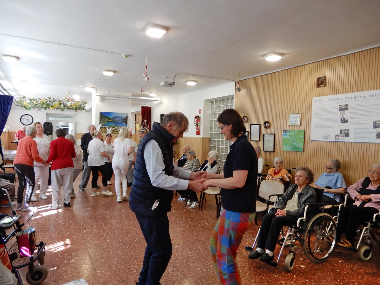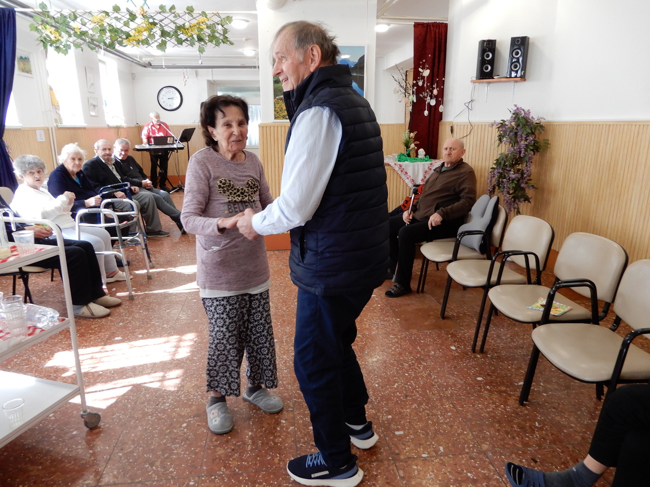 Ezt követően lakóinkkal közösen folytatódott a mulatság: felcsendültek a jól ismert dallamok, és egyre többen kapcsolódtak be a táncba. A nevetések, beszélgetések és meghitt pillanatok mind hozzájárultak ahhoz, hogy ez a délután igazán különlegessé váljon.