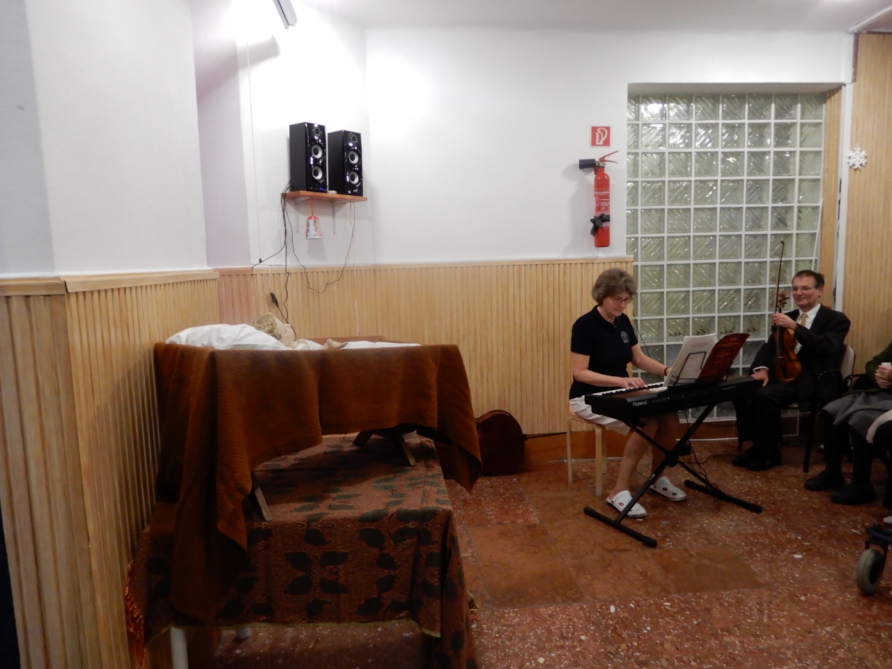 A műsorban kedves munkatársunk, Orsi, és férje Spartacus szerepelt. Bach darabokat válogattak erre az alkalomra, melyeket orgonán, csellón és hegedűn adtak elő. Ily módon családi muzsikálásban lehetett részünk. Gyönyörű énekek, versek, mesék is elhangzottak. Csokonay Anna munkatársunk is énekelt. Lakóink szíve megtelt áhítattal, lelkük gyógyult a zene és az énekek gyönyörű hangjaitól.