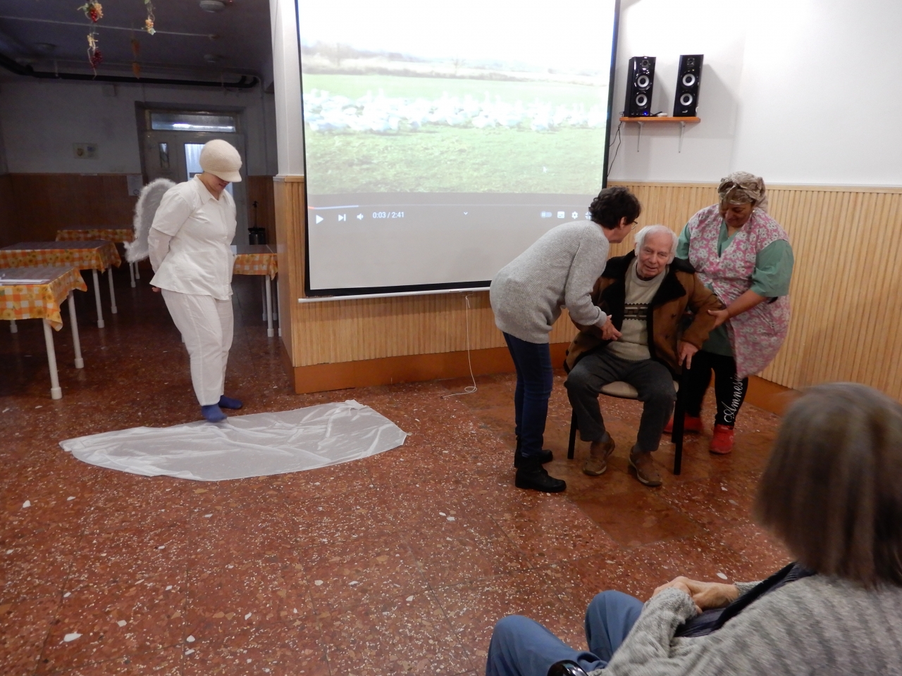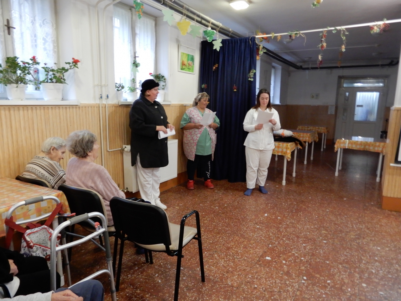 A mentálhigiénés csoport tagjai a lakókkal közösen idézték fel Szent Márton legendáját, majd a féllábú lúdról szóló mesejátékot elevenítették meg.
