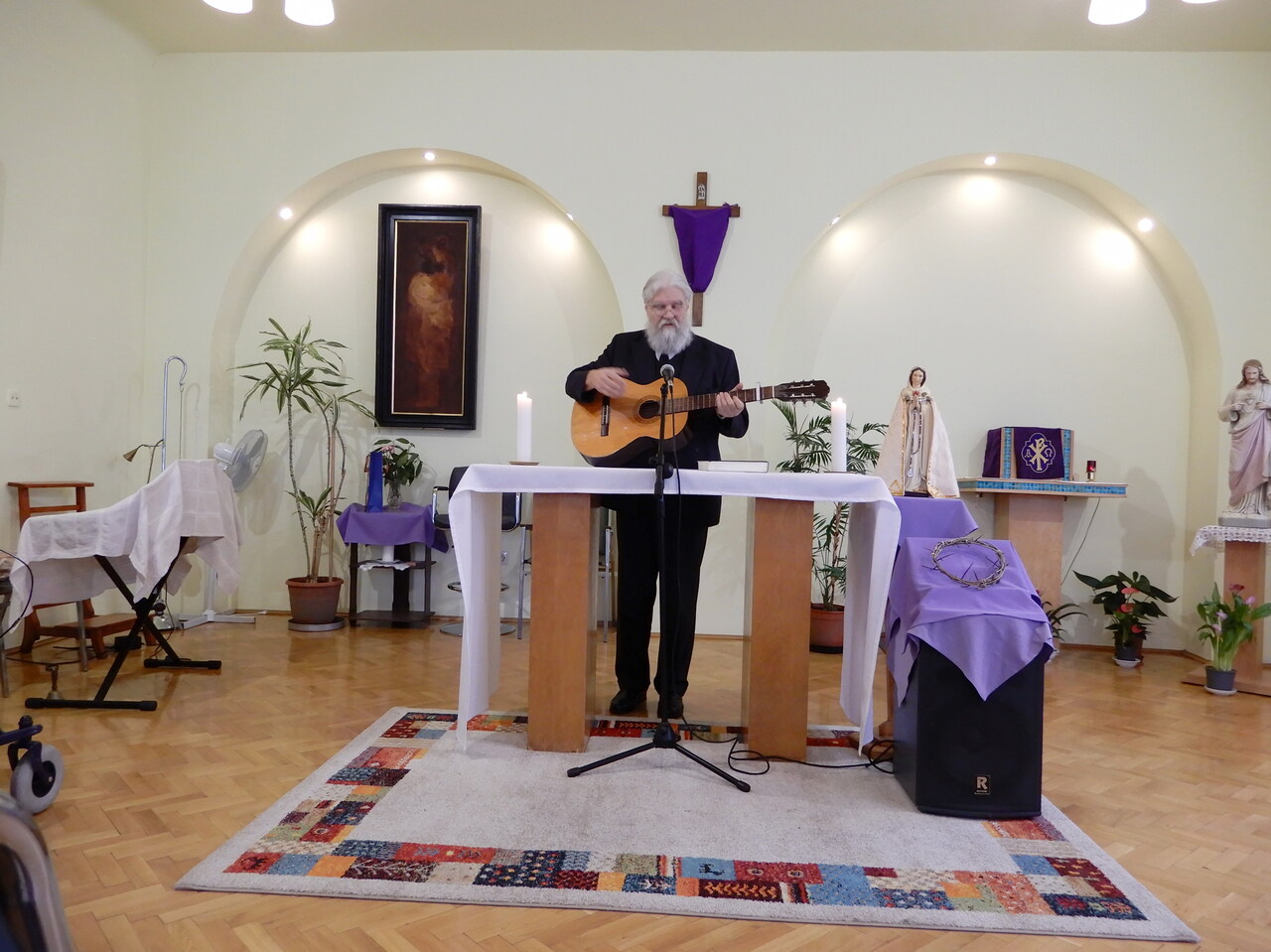 Ezt követően az „Annyi mindent hordozunk a világban…,” kezdetű éneket tanultuk meg. Az Úr iránti hála fogalmazódik meg benne. Ezek sokszor apróságok, de mi egyik apróságot sem tudjuk létrehozni. A legnagyobb dolog, amit megköszönhetünk, az Jézus kereszthalála, a halálon aratott győzelme, feltámadása, és amikor végre a jó halál kegyelméből megérkezünk hozzá, bennünket is a halálból az Életbe vezet.